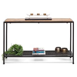 A unique piece in which a carefully crafted, Wood Top is placed in an Iron top bracket creating a look that is very distinct in its being. The two-levelled structure further allows for the utility quotient to be explored, providing plenty of Storage options whilst maintaining an exquisite aesthetic appeal. A perfect fit for Entryways, Hallways and even Living Rooms, this two-levelled Iron Hall Console Table will grace the space of your choice.