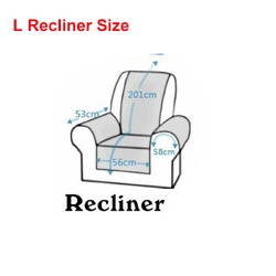 L Black Recliner: 173cm x 200cm, seat width up to 56cm