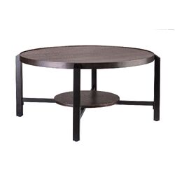 Black Round Coffee Table with Storage Shelf in Copper Finish Top
