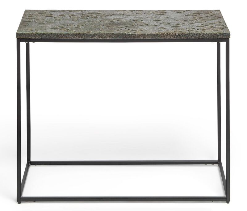 Black Sofa Side Table with Textured Wood Top