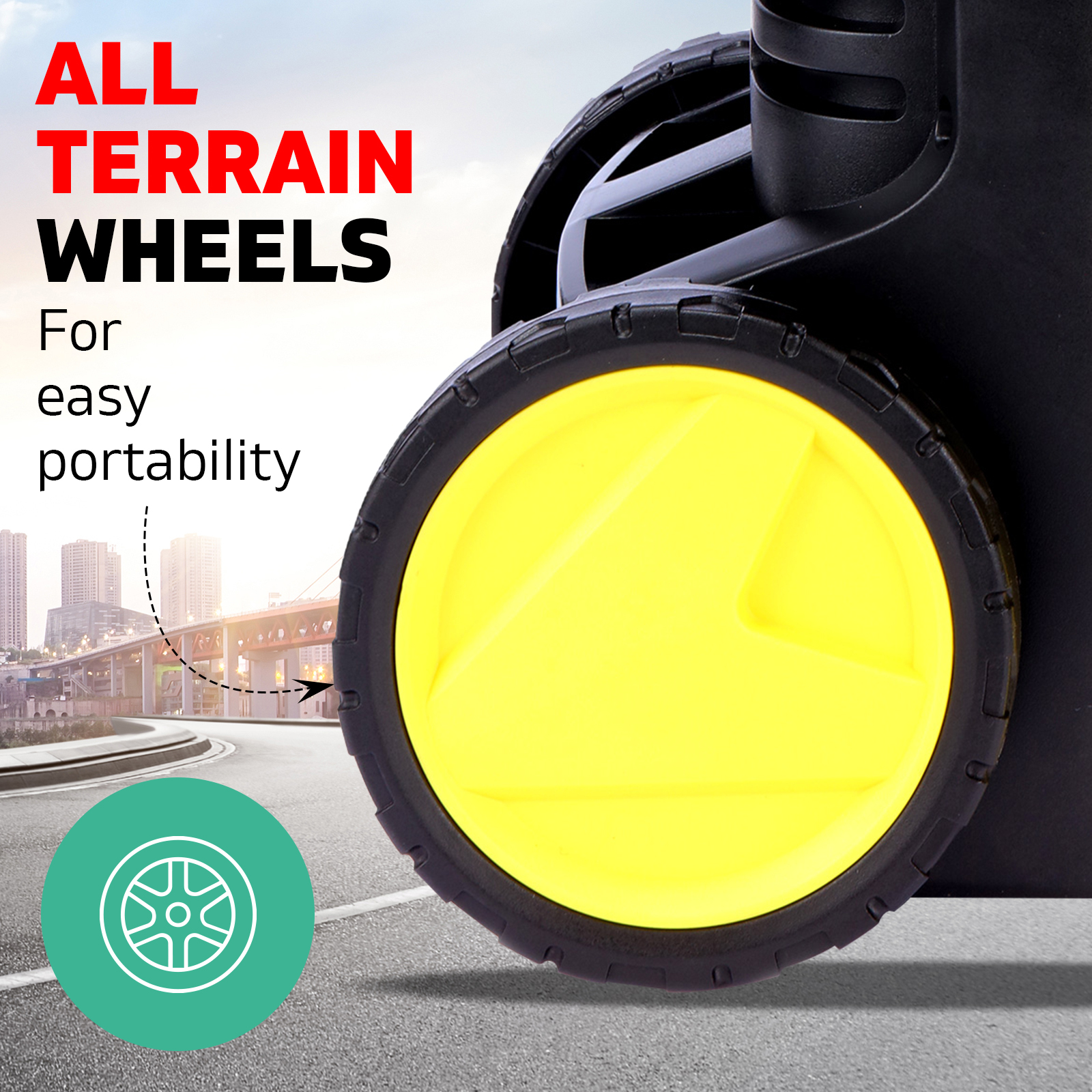 - The extended length also allows for use on construction sites and roofing. The all terrain wheels make it easily portable and suited for internal and external uses.