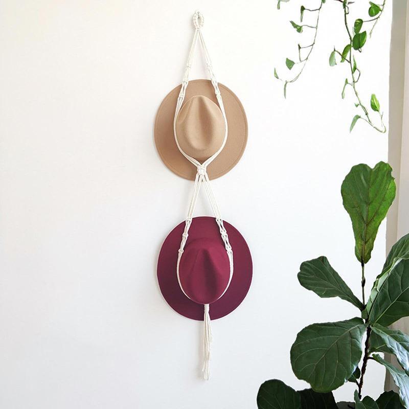 Boho Hand-Woven Macrame Hat Display Rack Hanging Cap Holder 1-3 Hat Rope hanger