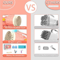 Bubblerainbow 69-Hole Bubble Gun Hand-Held Automatic Bubble Machine Luminous Kids Toy Pink