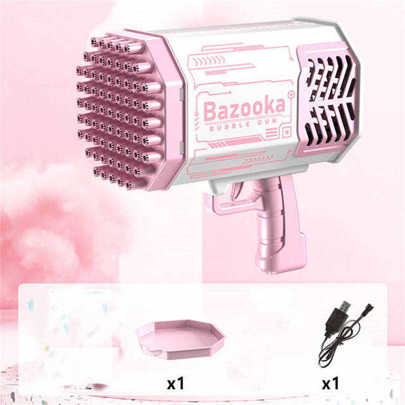 Bubblerainbow 69-hole Children Electric Bubble Machine Hand-held Rocket Colorful Lights Pink