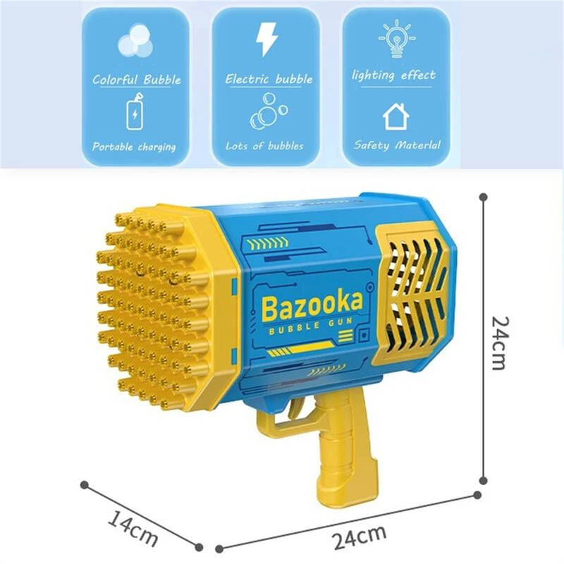Bubblerainbow 69 Hole Electric Bubble Machine Hand-Held Rocket Gatling Bubble Gun Toy Blue
