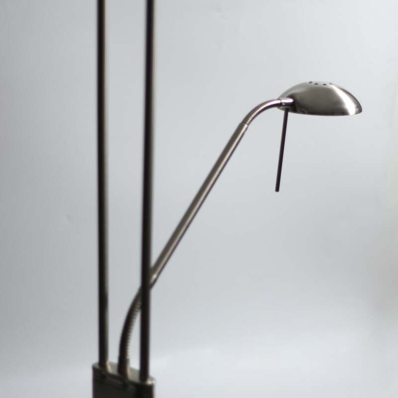 The Buckley Dimmable LED Mother & Child floor lamp is a sophisticated light furnishing that would add elegance to any room it is placed. Its 180cm satin chrome stand and circular base make for a striking feature in any living, dining or entertaining space. And the bowl-shaped diffuser is the touch of class needed to complete this beautiful lamp.