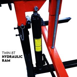 - Dual 8T hydraulic cylinders raise and lower the lifting cradles