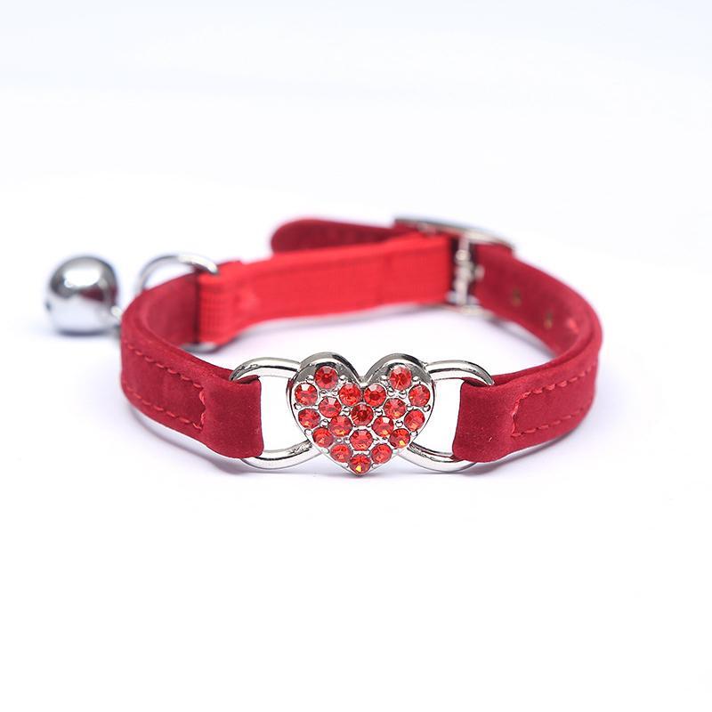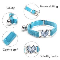 Cat Collar Suede Kitten Pet safety elastic Adjustable Bell Heart Bling Pink blue