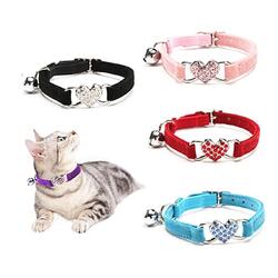 Cat Collar Suede Kitten Pet safety elastic Adjustable Bell Heart Bling Pink blue