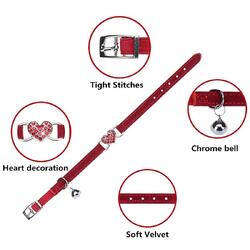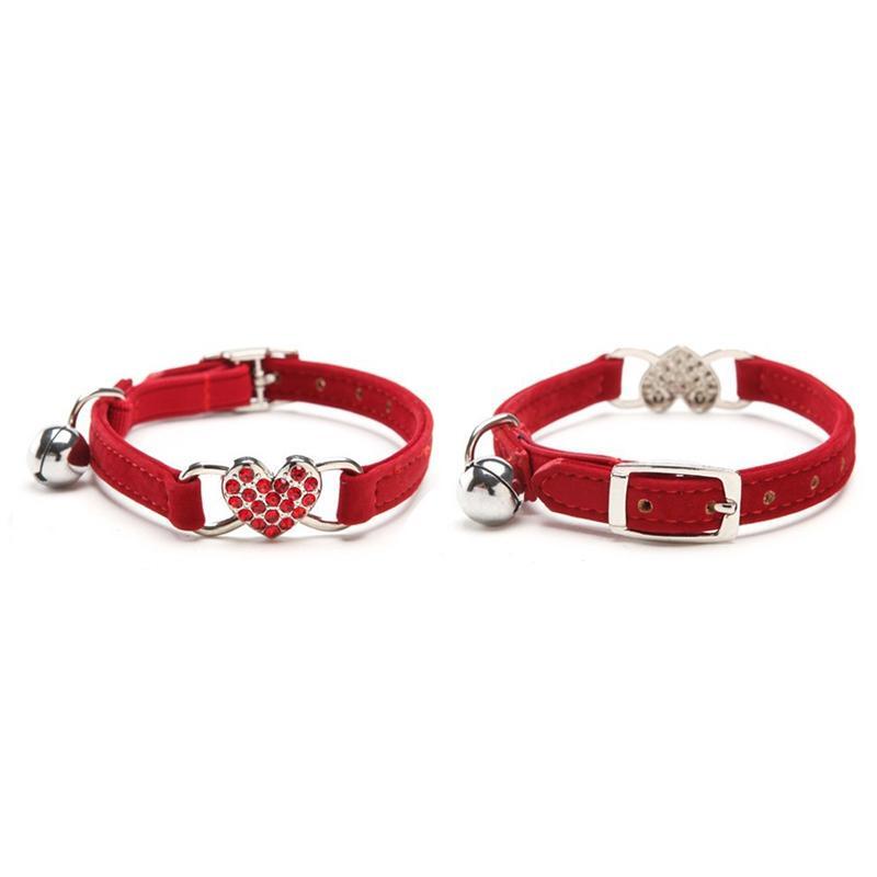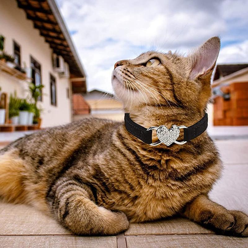 Cat Collar Suede Kitten Pet safety elastic Adjustable Bell Heart Bling Pink blue