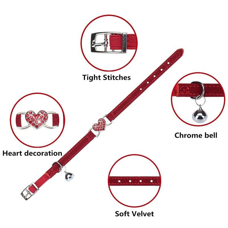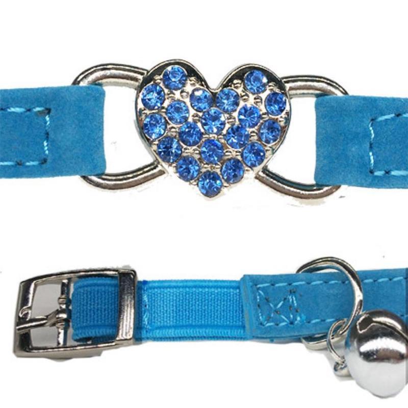 Cat Collar Suede Kitten Pet safety elastic Adjustable Bell Heart Bling Pink blue