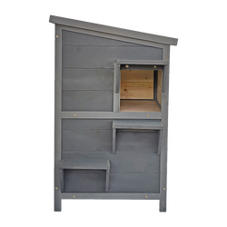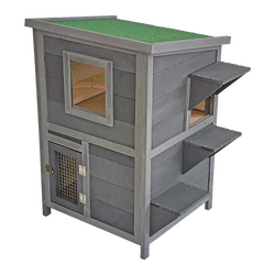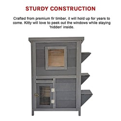 Your cat deserves a little spoiling now and then. This elegant cat condo definitely ticks off all the boxes. Stylish enough to be displayed proudly in your home, this two-tier kitty condo has plenty of room to house and entertain your feline friends. Crafted from premium fir timber, it will hold up for years to come. Kitty will love to peek out the windows while staying ‘hidden' inside. And, inside the top section, you can hide your cat's litter box to keep it out of sight from family and guests.
