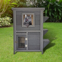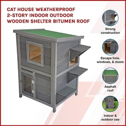 Cat House Weatherproof 2-Story Indoor Outdoor Wooden Shelter Bitumen Roof