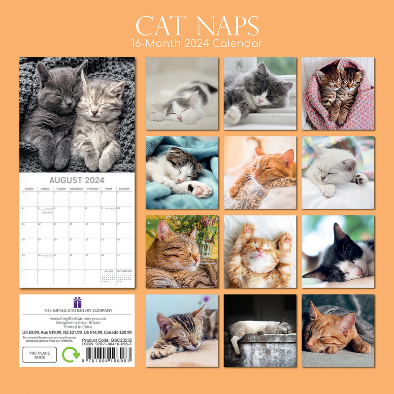 Cat Naps - 2024 Square Wall Calendar Pets Animals 16 Months Premium Planner Gift