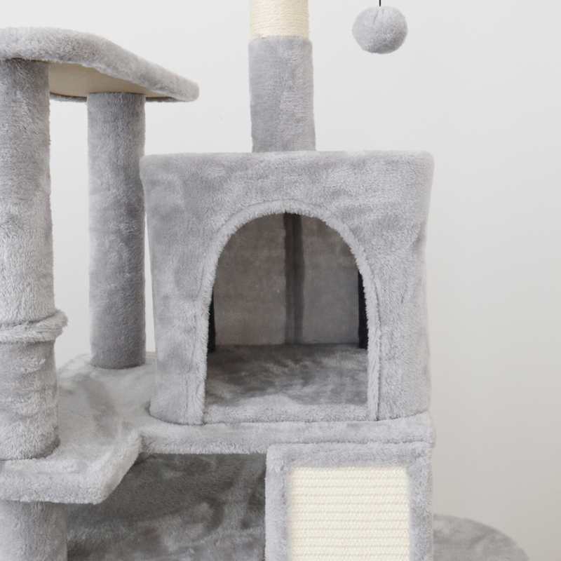 Has quality plush covering, the multi-level cat tower is composed of good quality plush material, which is very soft and comfortable, your furry family members will love the plush touch and enjoy exploring and sniffing around their new home, no scratching your furniture anymore.