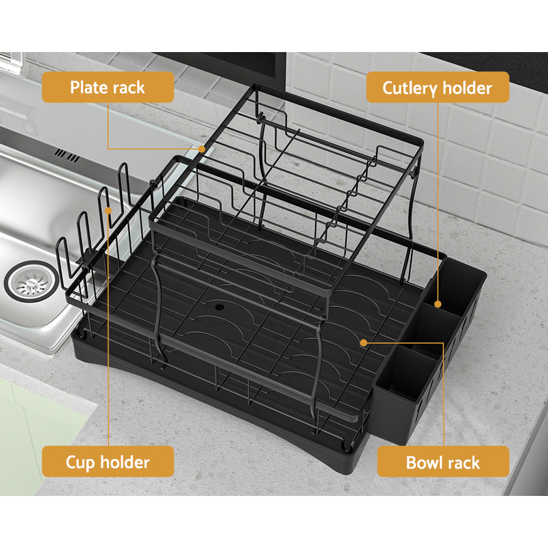 Cefito Dish Rack Expandable Drying Drainer Cutlery Holder Tray Kitchen 2 Tiers
