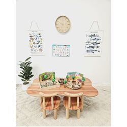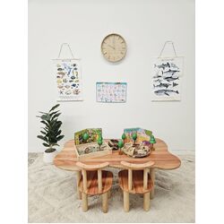 Introducing our Australian Mahogany children?? table and chair set! Crafted from high-quality, durable wood, this set is perfect for kids to enjoy a range of activities, from drawing and playing games to having snacks and doing homework. The table measures 120x75x45 cmH and the chair measures 30x32x27cmH providing ample space for kids to spread out and get creative. The matching chairs feature a comfortable seat and backrest, ensuring your child can sit comfortably for extended periods.This set is easy to assemble, making it a convenient choice for busy parents.