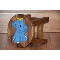 Children's Wooden Stool Blue Baby ELEPHANT Themed Chair Toddlers Step sitting Stool