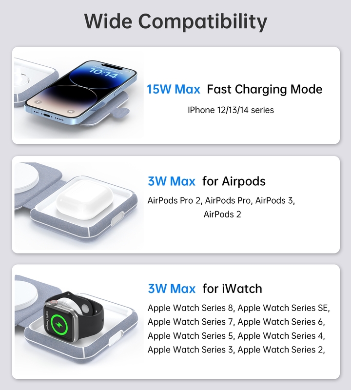 wirelessly charge your iPhone, Airpods and Apple watech at the smae time.