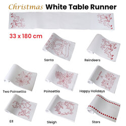 Christmas Print White Table Runner 33 x 180cm Poinsettia