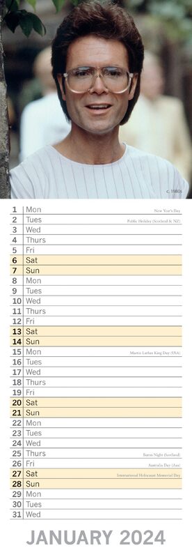 Cliff Richard - 2024 Slimline Slim Wall Calendar Hanging Planner New Year Gift