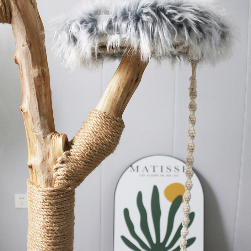 Give your furry companion the ultimate lounging spot with the CMISSTREE Modern Cat Tree with Hanging Hammock, featuring two perches, including a spacious, hanging hammock basket with a luxurious, removable & soft cushion. Hand-crafted with care, each cat tower is a one-of-a-kind creation, ensuring that you own a cat tree like no other in the world.