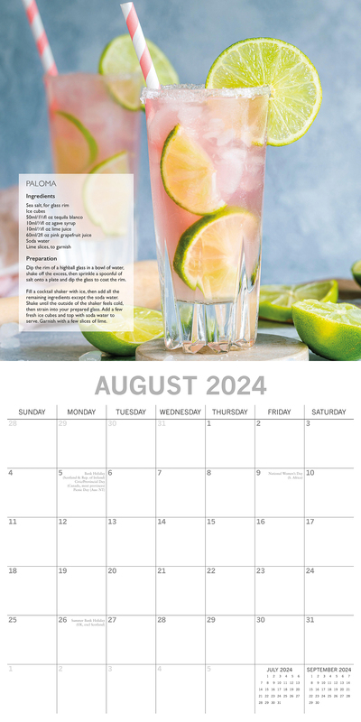 Cocktails - 2024 Square Wall Calendar 16 Months Food Planner New Year w Recipes
