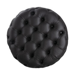 Contemporary Black Leather-look Ottoman with Button