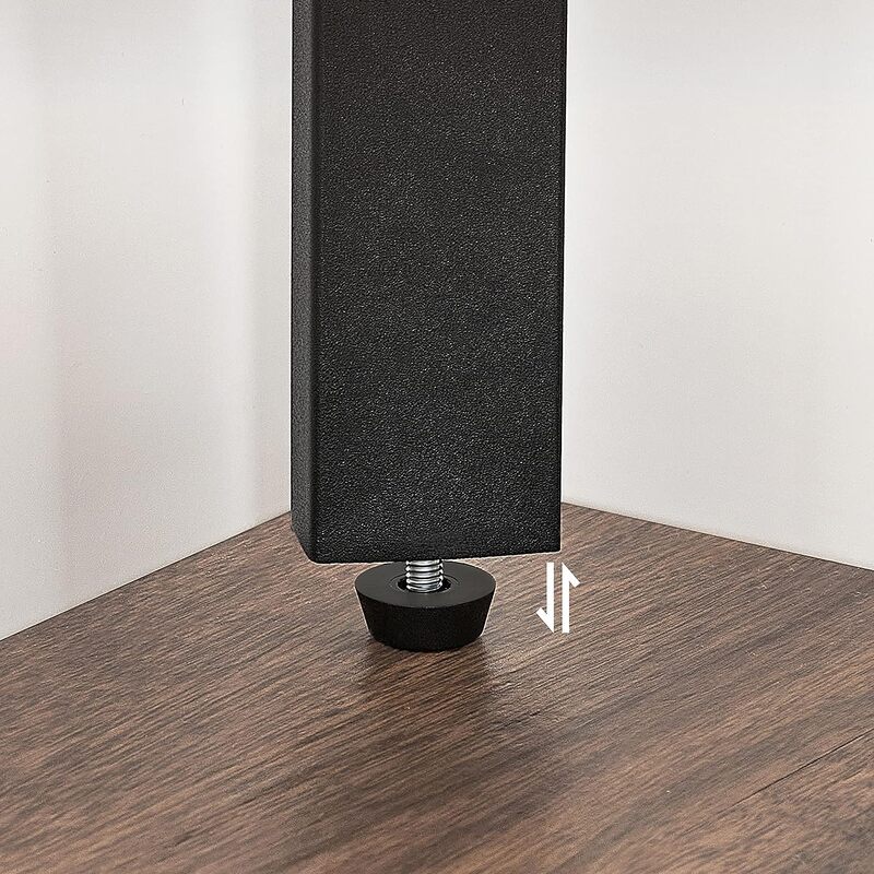 - This corner shelf organiser provides a stable three-legged structure for reliable storage. It includes 3 protective caps on the bottom, one of which is adjustable so it can be used on uneven surfaces. Plus, anti-toppling fittings are included to ensure it is securely anchored to the wall for safe use.