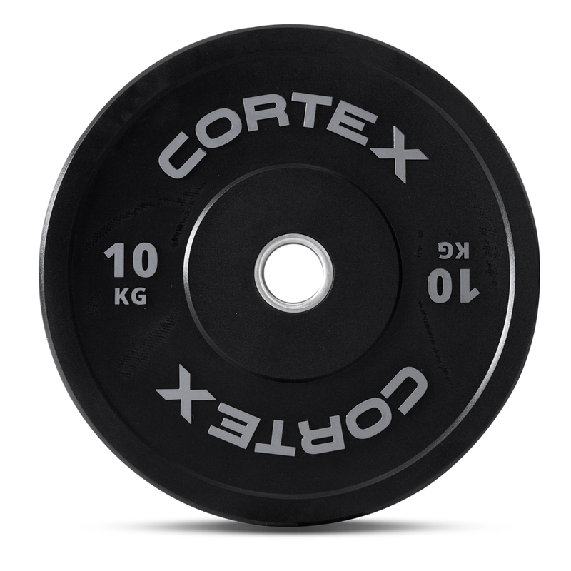 Our CORTEX 10kg Black Series V2 Rubber Olympic Bumper Plates are engineered for serious functional fitness use, Olympic lifting and Cross Fit training. The heavy-duty rubber surface is scratch resistant and designed to withstand high impact lifts. The grooved edges allow for better handling with the steel core offering seamless loading onto the barbell.