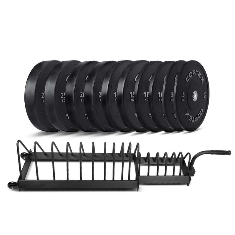 CORTEX 150kg Black Series V2 Rubber Olympic Bumper Plate Set 50mm with 16 Plate Toaster Rack