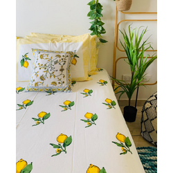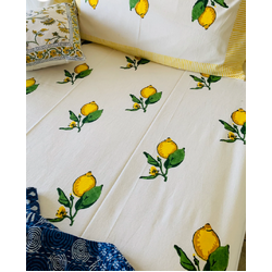 Cotton Bed sheet/Flat sheet - Lemon Hand block Printed Sheet (Queen size)