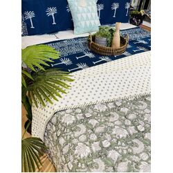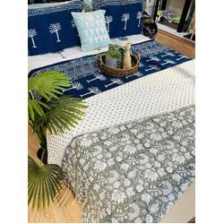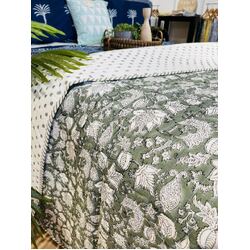 Cotton Bedcover/Bedspread/Quilt - Sage Floral Hand block printed Bedcover
