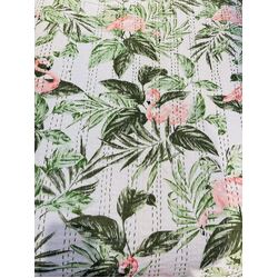 This tropical Kantha is hand stitched and hand printed by the local artisans of India on 100% cotton. It can accentuate your room space and refresh it. The print is full of pastel and bold colors, which can brighten up your beautiful space. This bedspread will give a tropical feeling to the room space. It is a lightweight bedspread which has two cotton fabrics all hand stitched together. This tropical flamingo and leaves kantha can be used as a bedspread, a coverlet, a quilt, or a throw for the bed.