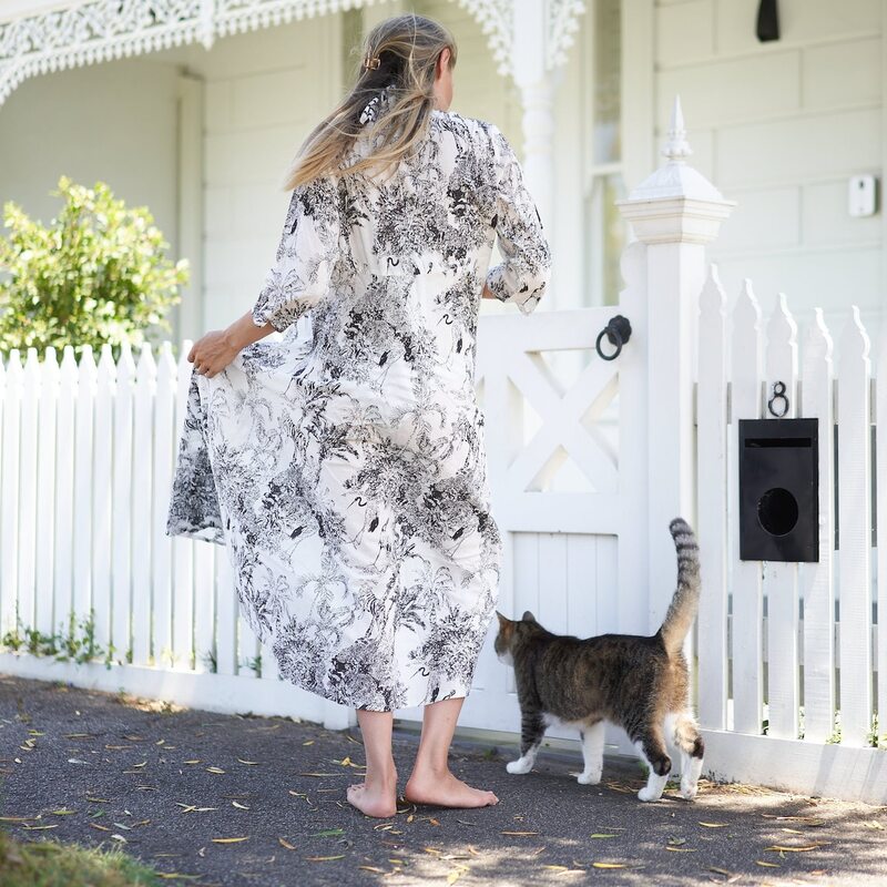 • This dress is made 100% cotton. The fabric is screen printed by hand.