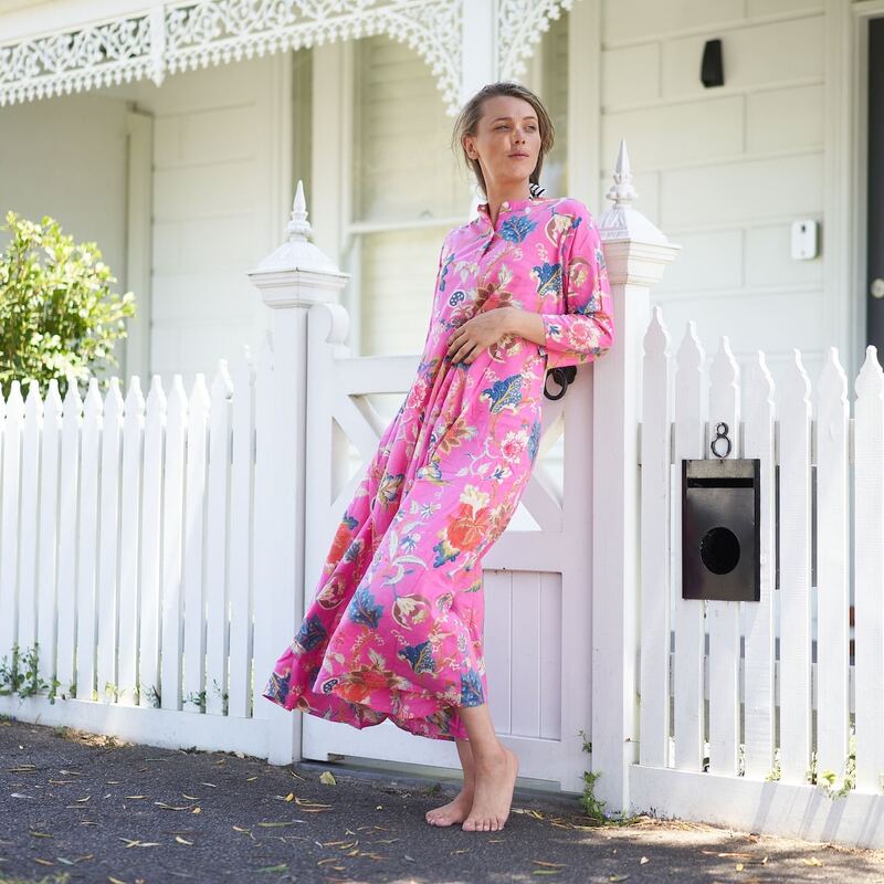 - This dress is made 100% cotton. The fabric is screen printed by hand.