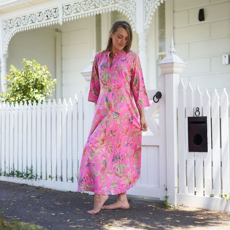 - This dress is made 100% cotton. The fabric is screen printed by hand.