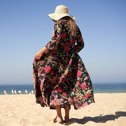 You will fall in love with this gorgeous piece; our boho maxi dress is bright, breezy and light. The elegant floral and framed design makes this dress timeless.