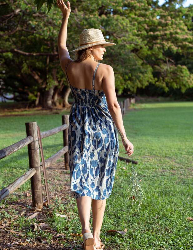 Our Strappy Indigo Midi dress boasts easy sophistication and ultimate comfort with an elegant style, perfect for this summer and everyday or casual work wear.