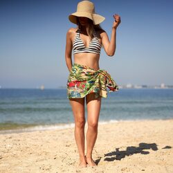 Our cotton boho handmade block print sarongs are perfect as a swimsuit cover up, beach skirt, scarf, shawl, quick drying beach blanket. This lovely tropical, beautiful and bold pareo beach sarong is perfect for so many occasions! Use it as a miniskirt, strapless top or just tie it around your waist as a swim cover pareo de playa cover up.
