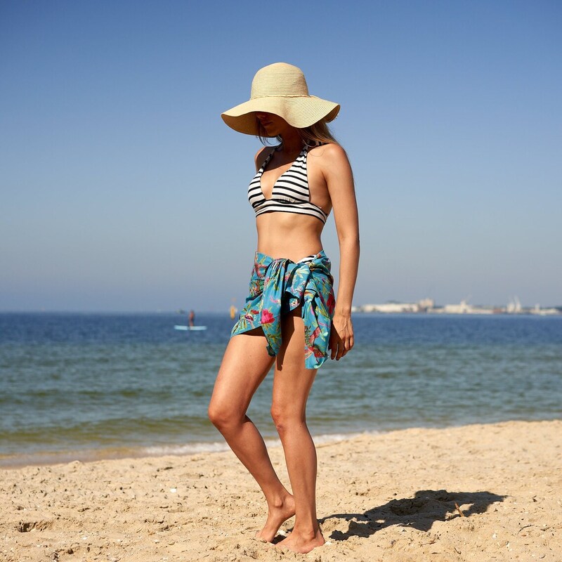 Our cotton boho handmade block print sarongs are perfect as a swimsuit cover up, beach skirt, scarf, shawl, quick drying beach blanket. This lovely tropical, beautiful and bold pareo beach sarong is perfect for so many occasions! Use it as a miniskirt, strapless top or just tie it around your waist as a swim cover pareo de playa cover up.