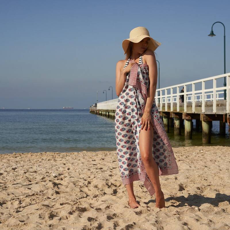 Our cotton boho handmade block print sarongs are perfect as a swimsuit cover up, beach skirt, scarf, shawl, quick drying beach blanket. This lovely tropical, beautiful and bold pareo beach sarong is perfect for so many occasions! Use it as a miniskirt, strapless top or just tie it around your waist as a swim cover pareo de playa cover up.