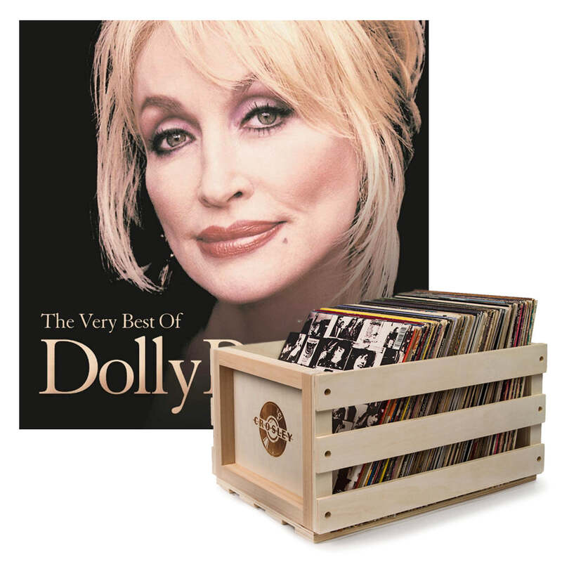 Crosley Record Storage Crate Dolly Parton The Very Best Of Dolly Parton Vinyl Album Bundle