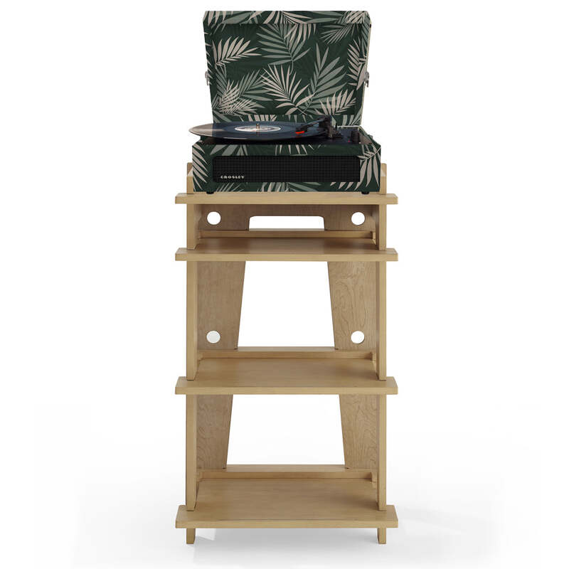 The Soho by Crosley is the music lover's ultimate turntable stand. The top shelf fits most component-style turntables and features two cable management holes to keep your setup tidy. The bottom two shelves can hold up to 100 records each and feature bumpers in the back to ensure that the records sit uniform and are easily accessible.