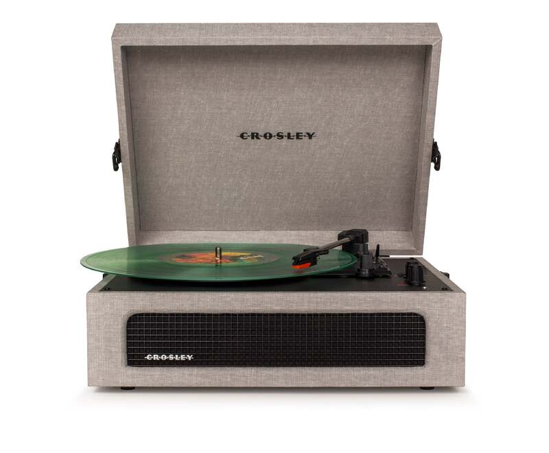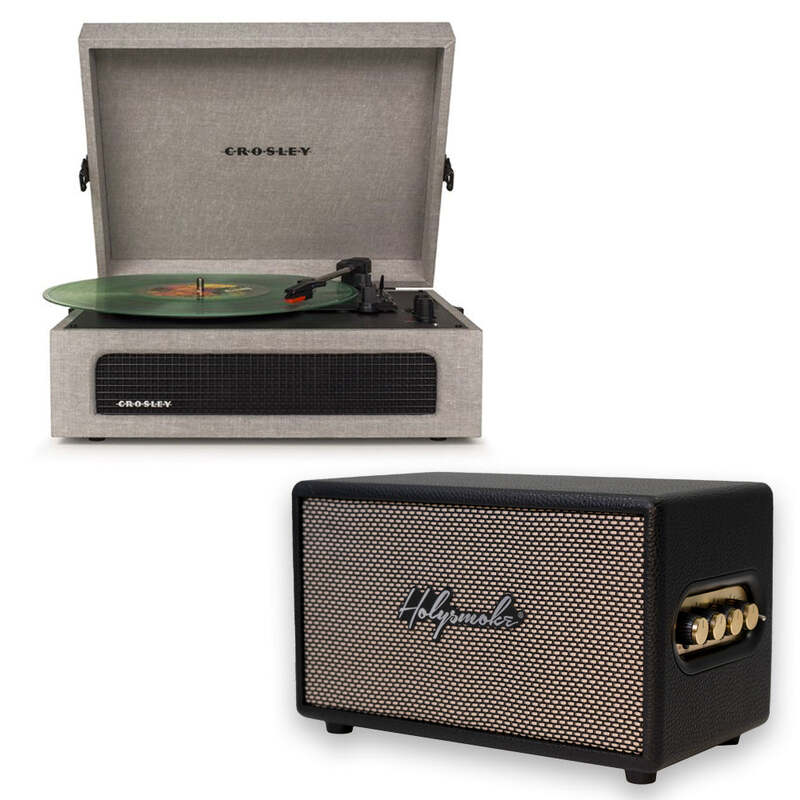 Crosley Voyager Bluetooth Portable Turntable - Grey + Bundled HolySmoke Bluetooth Retro Speaker - Black
