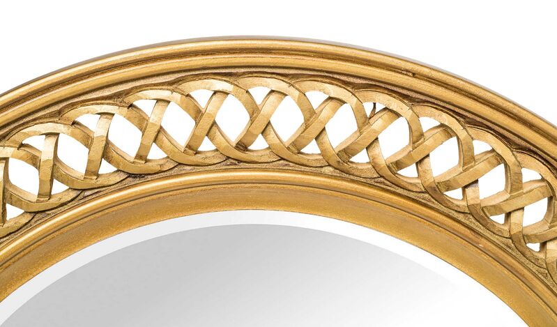 Bring an element of the Vintage charm into your Home with this Decorative Wooden Round Wall Mirror in Rustic Gold Finish. Handmade by masterful artisans, this piece features the gorgeous cross design engraved in stunning detail. The Round design further accentuates serenity as this Bevelled Edged Mirror fits perfectly in a Chic Classical Interior.