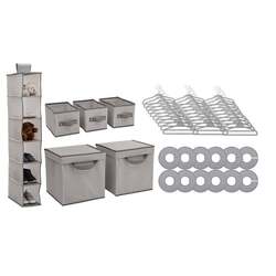 This handy set includes 30 velvet hangers, 12 closest dividers, three small bins, two large bins with lids, plus a six-shelf hanging organizer. Each item is designed specifically for kid-sized stuff with a durable construction that can handle heavy use. Use the items in this set for baby clothes, burp cloths, bibs, socks, diapers, toiletries, and other nursery accessories.
