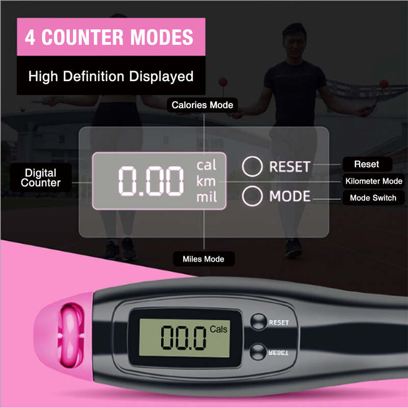 Digital Display: The rope is equipped with a digital display that shows real-time workout data, such as the number of jumps, calories burned, and exercise time, helping you monitor your fitness progress.