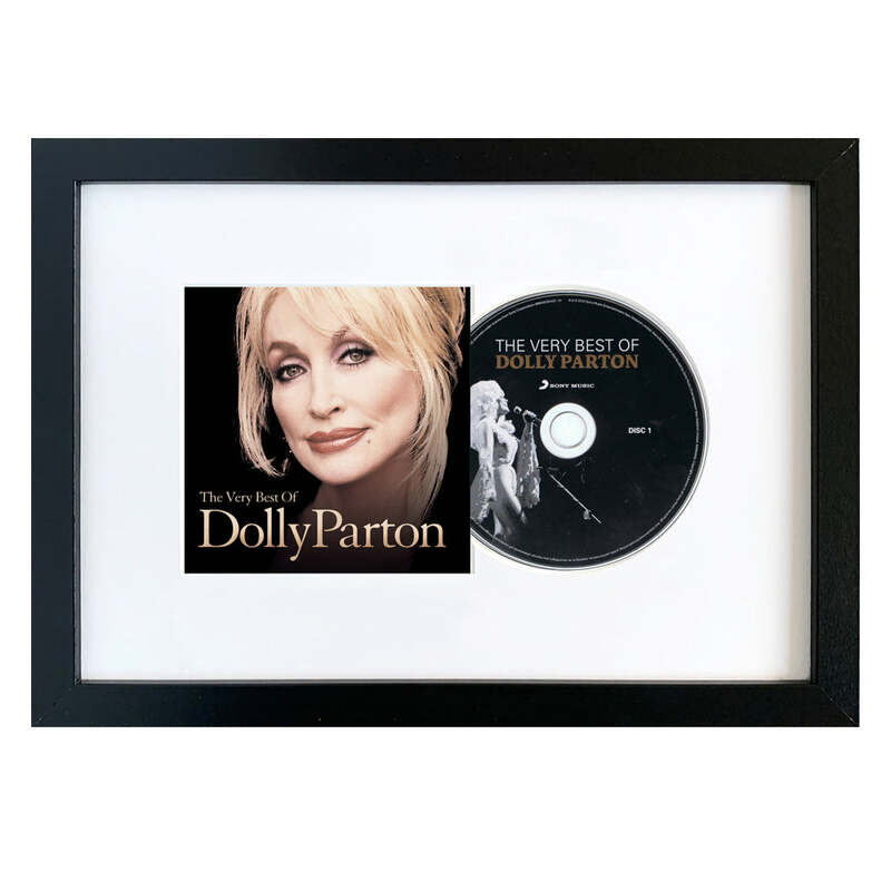 Framed Dolly Parton 'The Very Best Of Dolly Parton' CD Album Art. We are eager to honour and showcase your favourite artists by framing the actual original artist's CD cover and the CD itself. This CD is framed using all-wood profiles, archival matting, and UV-filtering non-glare acrylic. The cover artwork is presented in full, while the actual CD peeks out of the side. The outer dimensions of each frame are WH 32.5cm x 23.5cm.