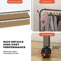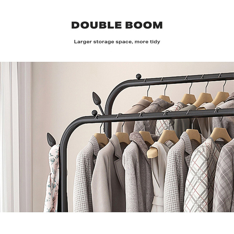 Double Clothes Rack Steel Garment Coat Hanger Stand Closet Shoes Storage Shelf